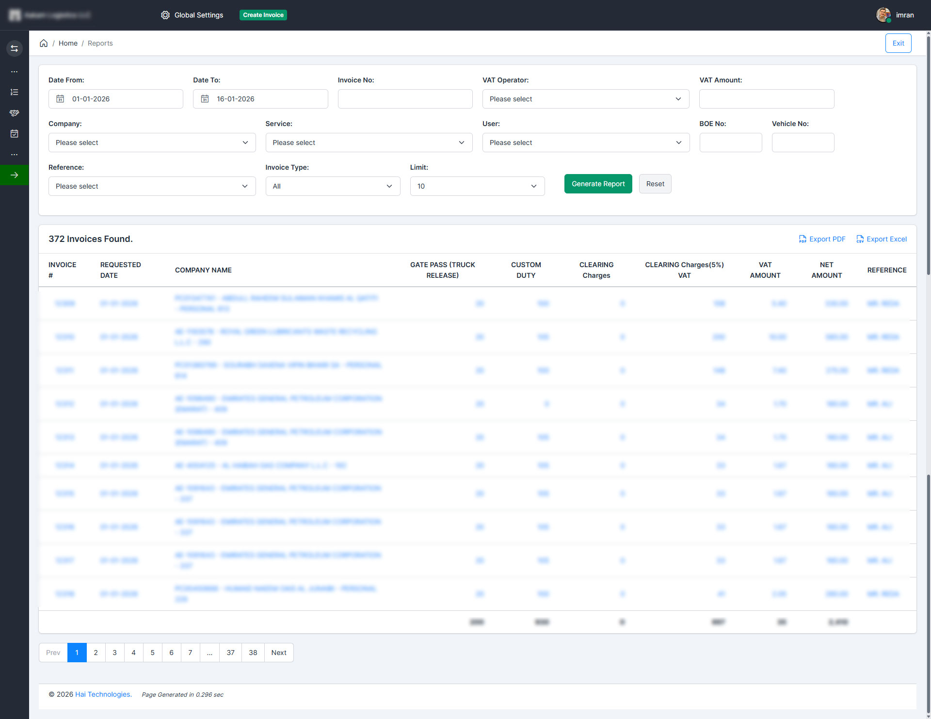 - Excel and PDF invoice export